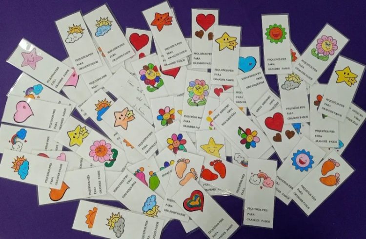 “Pequeños pies para grandes pasos”. Con este mensaje se han hecho las tarjetas que acompañarán los kits de este año y que además llevan bonitos dibujos elaborados por los usuarios de la Residencia Virgen de África.