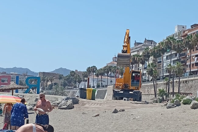 Estamos en la playa intentando disfrutar de nuestro mar y alejarnos de la rutina en este 1 de julio y nos encontramos con el esperpento de grúas, movimientos de tierras, polvos y suciedad.