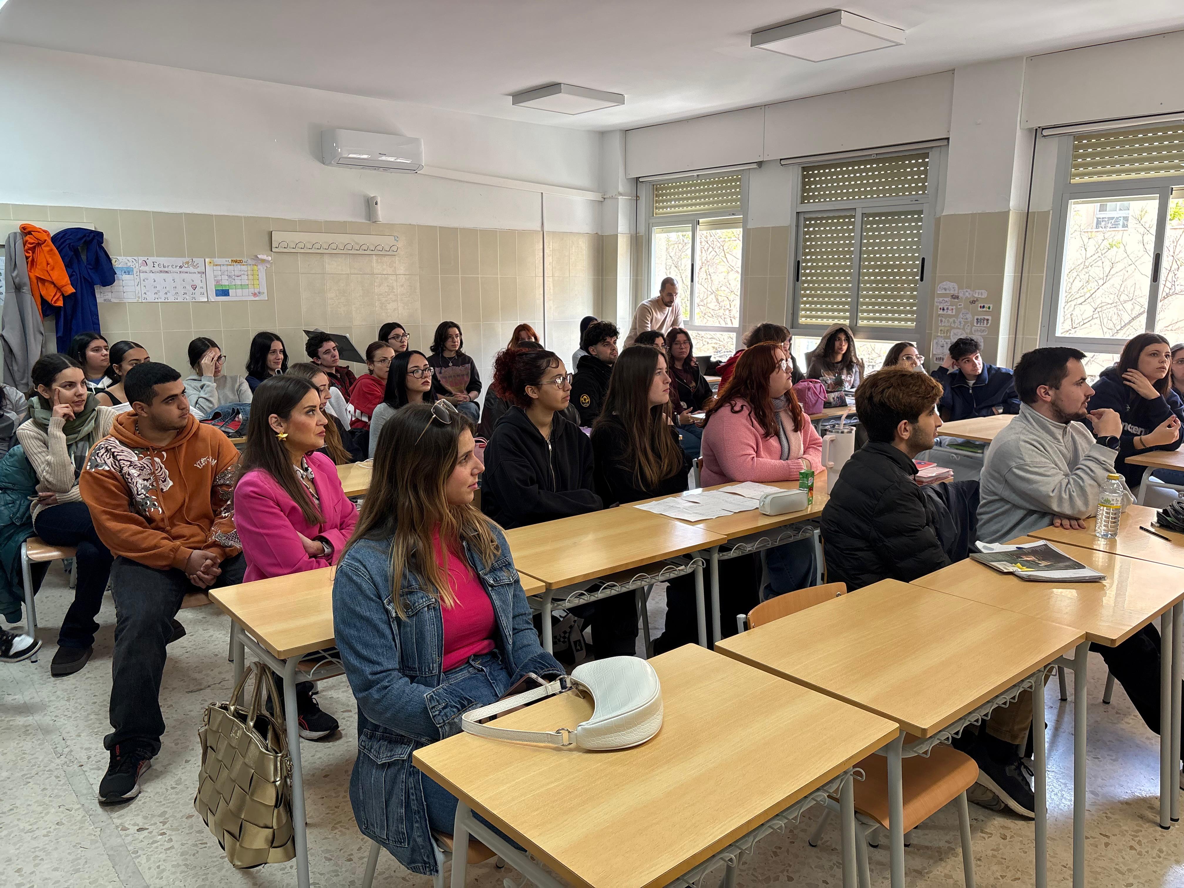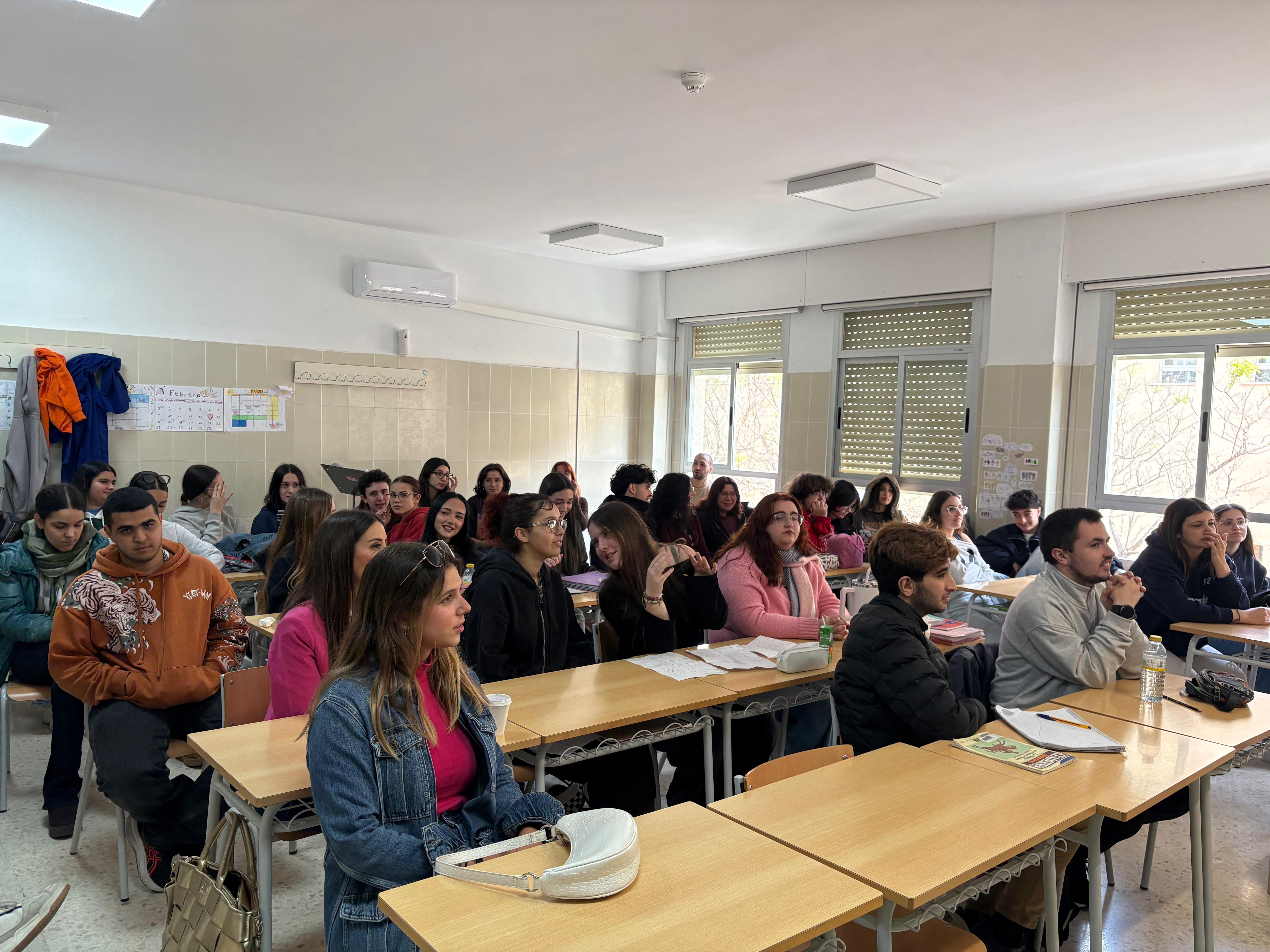 Tras esta primera ponencia, el protagonismo pasó a Miguel Ángel Vega, actor ceutí que ha logrado abrirse camino en el ámbito nacional. Su intervención despertó un notable interés entre el alumnado, no solo por su trayectoria, sino por la cercanía con la que compartió su experiencia.