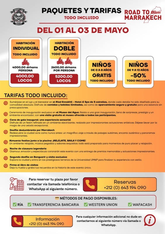 La cita, organizada por el Club Crimson Aces (CAFL) de Marruecos, se celebrará del 1 al 3 de mayo en Marrakech y reunirá a miles de apasionado de las motos de distintos territorios.