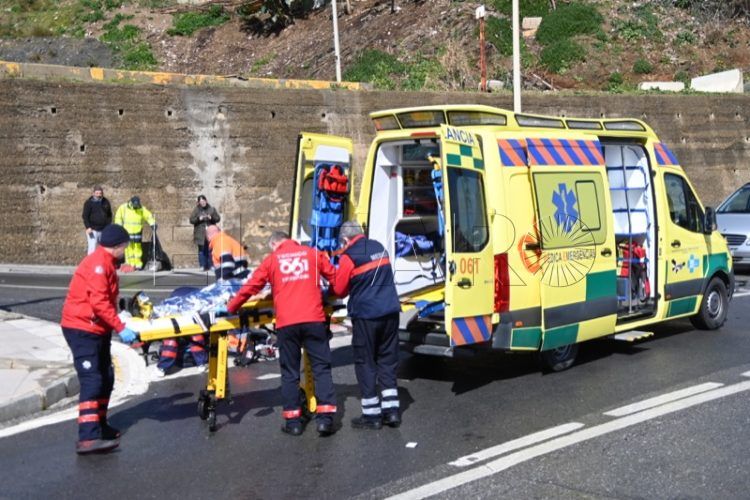 Una ambulancia del 061 se desplazó a la zona en la que se produjo la colisión, ubicada justo al lado del puente peatonal construido para comunicar un lado de la vía con otro, atendiendo en el lugar a la víctima que quedó tendida en el suelo y herida.