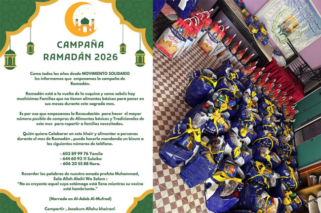 Esta semana, Movimiento Solidario ha dado a conocer su nueva campaña solidaria por Ramadán ya que, según expresan, “hay muchísimas familias que no tienen alimentos básicos para poner en sus mesas durante este sagrado mes”.