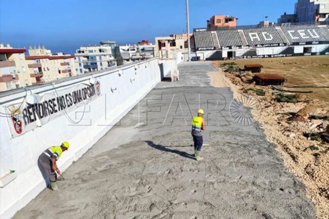 El estadio Alfonso Murube, el ‘templo’ de la Agrupación Deportiva Ceuta, está en un periodo de transformación, ajustándose a los requisitos que se demandan para jugar en la categoría de plata del fútbol español.