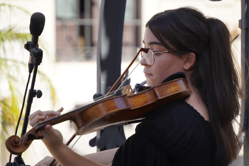 El homenaje también contó con un momento musical, protagonizado por dos integrantes del Conservatorio de Música de Ceuta, quienes interpretaron una pieza al inicio del evento.