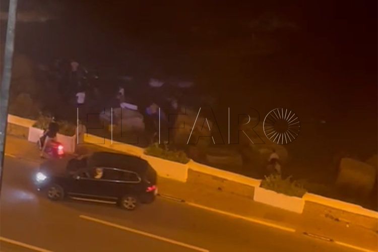 Unos 200 jóvenes marroquíes y argelinos a la carrera, adultos y menores, quisieron entrar en Ceuta esta madrugada buscando superar los arenales para bordear después el espigón.