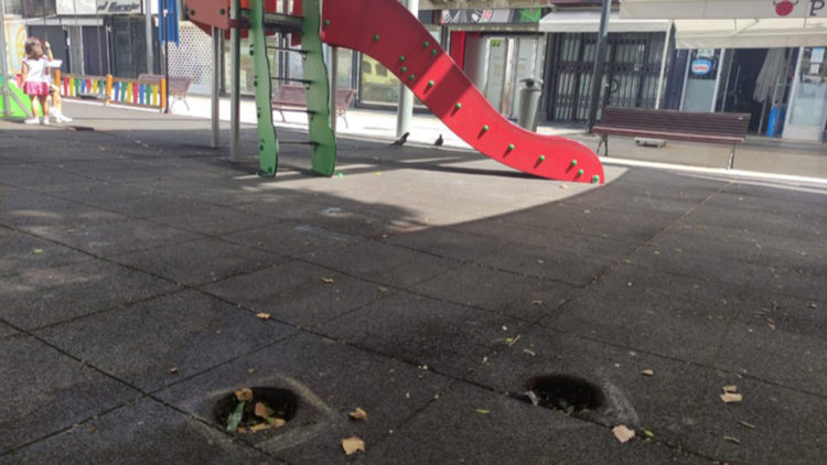 No se trata de una situación nueva, sino de un problema que se ha estado arrastrando durante un mes aproximadamente sin que se haga nada al respecto. Mientras tanto, “los niños meten los pies y se caen” porque no siempre se dan cuenta a tiempo de la presencia de estos agujeros en el suelo.