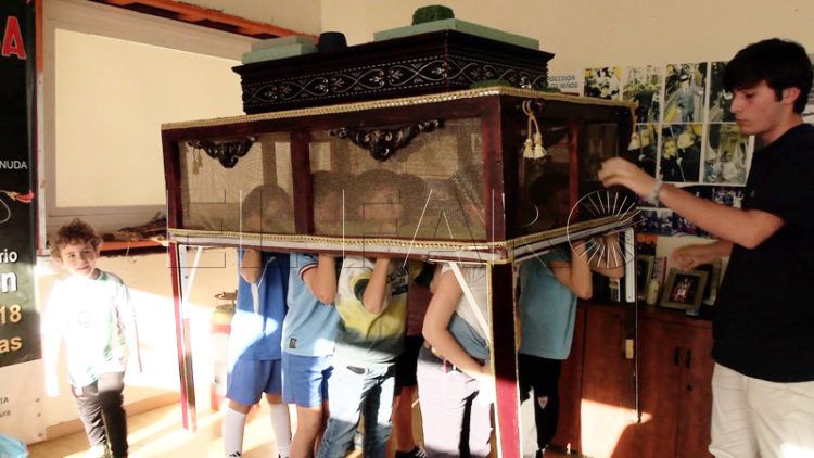 Los 'niños costaleros' de de la Asociación de Vecinos del Centro sacarán este jueves el nuevo paso infantil de la Cruz de Mayo que con tanto esmero llevan semanas preparando. El El tradicional Paso de los Niños de Ceuta siempre genera gran expectación de público, especialmente entre familiares y amigos de las familias de los pequeños.