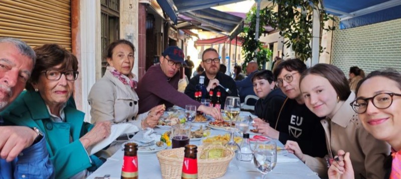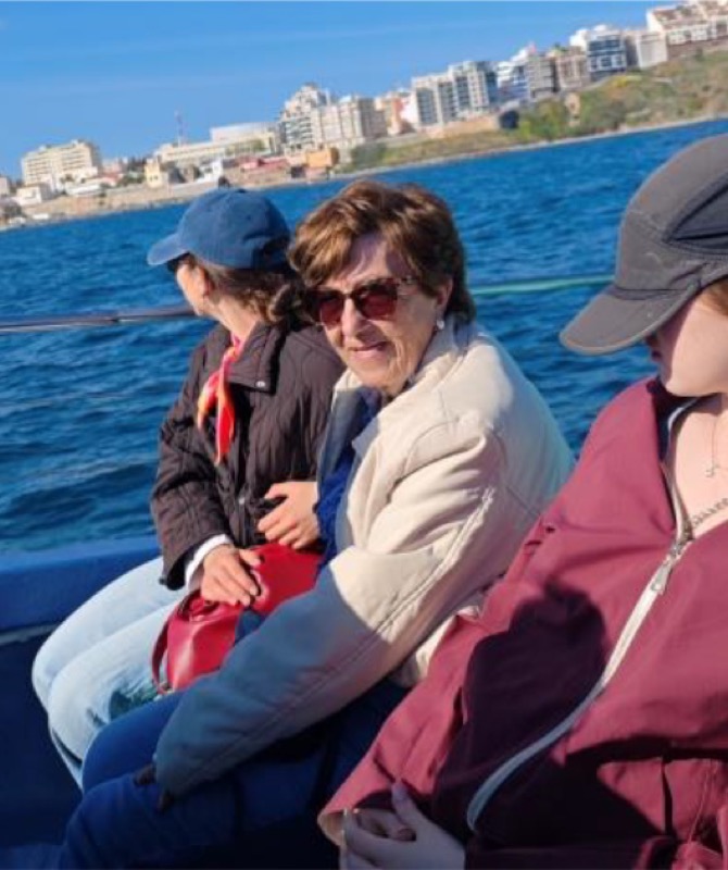 Nos presentamos: somos Gemma, Mamen y Mª Eugenia, las tres hijas de Carmen Guil Ortuño y de Juan José Gargallo Lara. Y, después de dos años intentando cuadrar las agendas, hemos hecho realidad una de las grandes ilusiones de mi madre: ir toda la familia a Ceuta esta Semana Santa. Y cuando hablo de familia, no me refiero solo a las 3 hijas (nuestro padre murió en un año y medio); en este “pack”, también se incluye a los yernos (Xavi, Pedro y Steve) y a los nietos (Marta, Mia y Milo, 3 de 4). 10 en total. Deberíamos haber sido 11, pero su trabajo como profesora de esquí le ha impedido a mi segunda sobrina Emma apuntarse al viaje. Cierto, no viajó a Ceuta, pero estuvo muy, muy presente en todo este periplo.