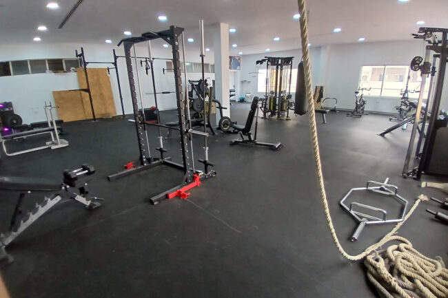 La altura libre de 4 metros puede utilizarse para trepa de cuerda, y los cerramientos tienen suficiente resistencia para colgar equipamiento y materiales propios de gimnasio, contando con falso techo acústico para alojamiento de instalaciones y cumplimiento del tiempo de reverberación.