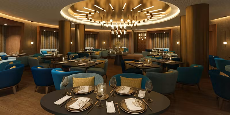 En el ámbito gastronómico, el hotel cuenta con cinco espacios diferenciados, entre los que destacan el restaurante de cocina local Azurita y el Al-Manara Rooftop.