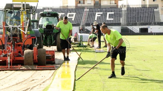 Entre los propósitos está que el día 20 la plantilla pueda entrenar a las órdenes de JJ Romero sobre el nuevo césped, solo días antes de ese segundo encuentro de la liga.