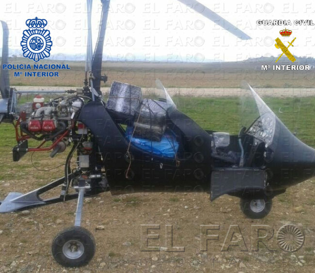 Este autogiro fue el empleado por una organización dedicada al tráfico de hachís para introducir 110 kilos de esta droga en la península, en concreto en Ronda. El aparato provenía de Marruecos y en la operación de la Policía Nacional han sido detenidas cuatro personas. El decomiso se llevó a cabo al tenerse informaciones de la salida de esta droga y conseguirse interceptar la vía de salida. El método usado, por el aire, no es nuevo para las fuerzas de seguridad. En Ceuta también se han abortado pases más pequeños.
