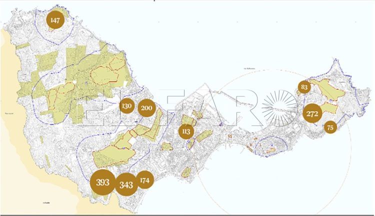 Hasta 272 se eleva la de Huerta Solís, que se presenta como la “operación de remate del tejido urbano en la zona del Monte Hacho” y que se impulsa para “obtener suelo para completar el elemento del sistema general de espacios libres” en conjunción con el ámbito de la Ducar y San Amaro Norte y Sur, que deberá “generar una zona de esparcimiento para la ciudadanía a la vez que proteger visualmente el conjunto y ganar espacio para los sistemas de dotaciones locales”.