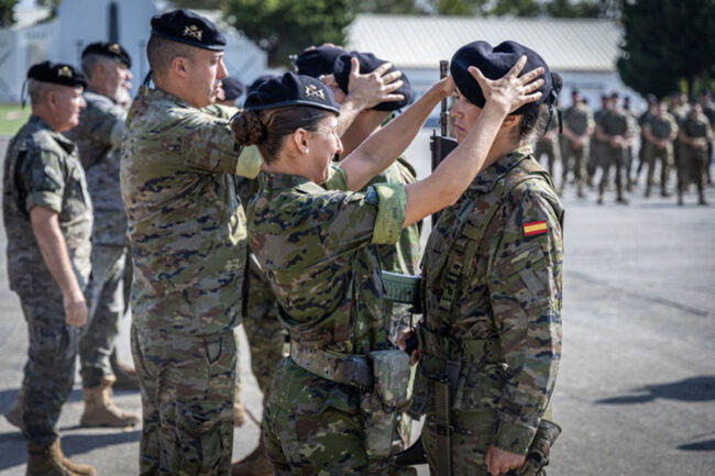 La escena que ha quedado plasmada en estas fotografías ha sido la del acto de entrega de boina a los 45 nuevos jinetes del Regimiento de Caballería Montesa nº 3. Esto una vez culminado con éxito el Curso de Cazadores que se extendió durante un mes.