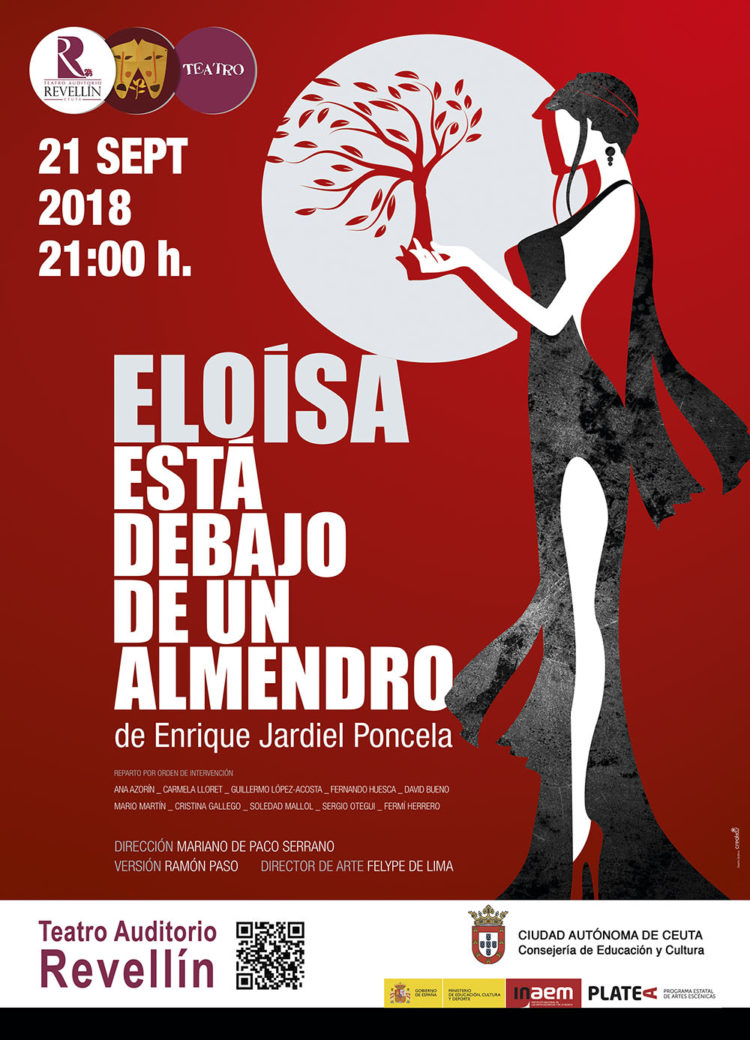 La Consejería de Educación y Cultura ha puesto hoy lunes a a la venta las entradas para la representación teatral de la obra Eloísa está debajo de un almendro, de Enrique Jardiel Poncela, el próximo 21 de septiembre a las 21.00 horas en el Teatro Auditorio del Revellín. Las localidades están disponibles en la web www.ceuta.es y en la taquilla del Teatro a un precio de 15 euros en el patio de butacas y de 13 en el palco, con descuentos aplicables de dos euros para los colectivos habituales (niños, mayores, familias numerosas y usuarios del carné joven).