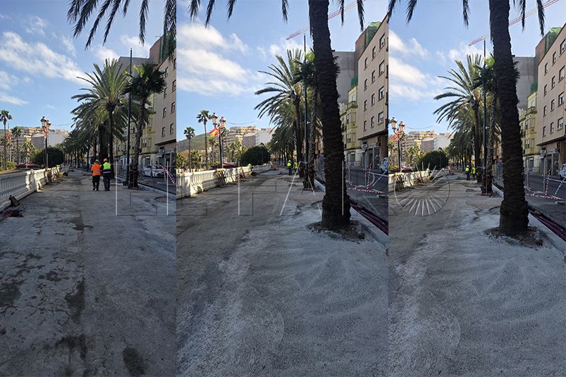 Actualmente se están ejecutando tareas de demolición, acondicionamiento de firmes y canalizaciones, así como trabajos que requieren un tratamiento especial de las raíces de la arboleda del paseo, especialmente de las palmeras.
