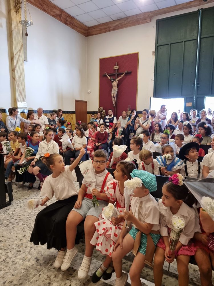 El Colegio de Educación Infantil y Primaria (CEIP) Vicente Aleixandre ha celebrado este viernes una ofrenda floral a la imagen de María Santísima de la Palma en la capilla de Manzanera, ubicada en la barriada en la que también se encuentra este centro público.
