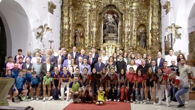 Finalizado este acto, todos los presentes se trasladaron hasta la Iglesia de Nuestra Señora de África. Una vez allí, se oró por todos los jugadores y jugadoras que han comenzado. Tras ello, se dio paso a la ofrenda floral a la Patrona de la ciudad, la Virgen de África, en la que, tanto el presidente de la RFFCE, Antonio García, como representantes de los diferentes equipos de la ciudad, subieron al altar para hacer entrega de un canasto con flores a María.