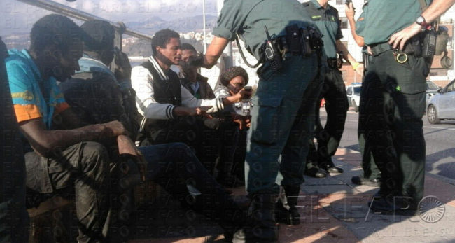 Agentes de la Guardia Civil atendieron en primera instancia a los inmigrantes, para su posterior filiación y traslado a Comisaria y, posteriormente, al CETI.
