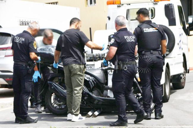 Agentes de la Policía Científica han acudido al lugar para inspeccionar el vehículo a dos ruedas, que se encontraba en la zona de Pozo Rayo.