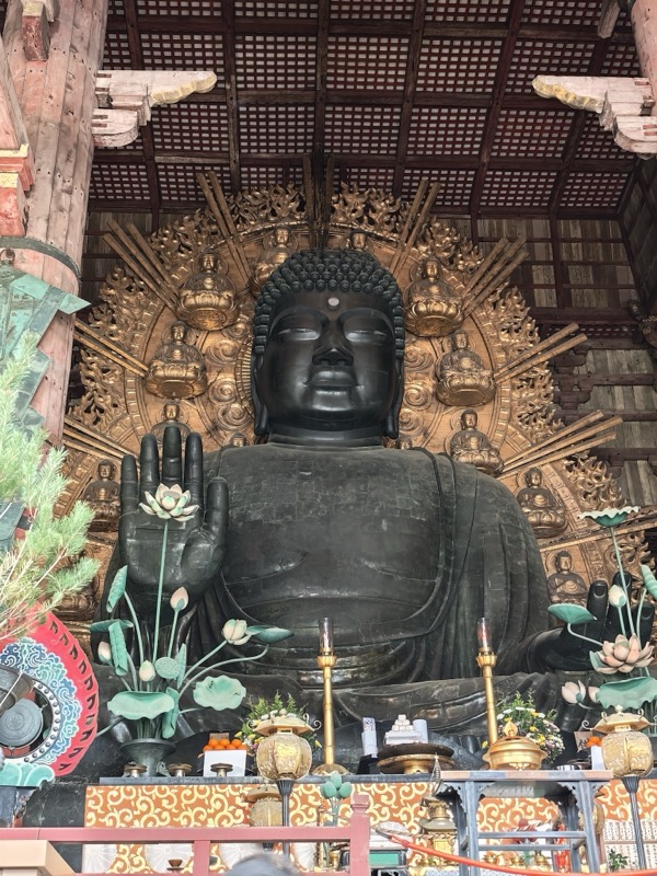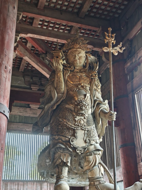 Desde la estación de Shin Osaka nos fuimos a pasar el dia a Nara, un dia es suficiente para disfrutar del gran templo budista de Todai ji, es uno de los más significativos templos de Japón y alberga en su interior uno de los budas más grandes del país con una altura de quince metros. Esperamos una hora para entrar en el recinto, la cola era interminable pero viendo el lado positivo, una vez que entras has puesto a prueba tu paciencia y te llevas una incalculable lección de estoicismo. Desde lejos ya se puede ver la magnitud del templo. La entrada está escoltada por dos estatuas inmensas que representan a los reyes Guardianes Nio y de ahí al patio central y al gran edificio de madera donde alberga el gran Buda. Además en su interior se encuentra un pilar de gran anchura con un estrecho agujero en su base que, según dice la leyenda, quien logre atravesar el agujero sin ayuda alcanzará la iluminación en la próxima vida. Las colas para intentarlo eran interminables, así que optamos por volver a quedarnos en la placida oscuridad en la que estamos inmersos otra vida más, además de que mi culo amenazaba a atasco.