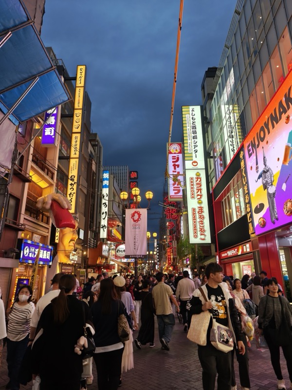 Después de los agotadores días en Kyoto nos dirigimos a Osaka, ya lo conocía de tiempo atrás pero es una de las pocas ciudades que tiene encanto a pesar de las grandes aglomeraciones. Es la tercera ciudad más grande de Japón después de Tokio y Yokohama, mirándole el lado bueno puedes encontrar rincones en la ciudad llenos de paz, e incluso silencio, en calles estrechas y santuarios escondidos. Normalmente el centro de Osaka es lo más concurrido aparte del Universal Studios de Japón en Sakurajima, una huella más que los gringos dejaron en forma de parque de atracciones en la ciudad. Aun así, los japoneses han sabido mantener un equilibrio entre modernidad y cultura, una mezcla que puede definir a la perfección a Osaka.