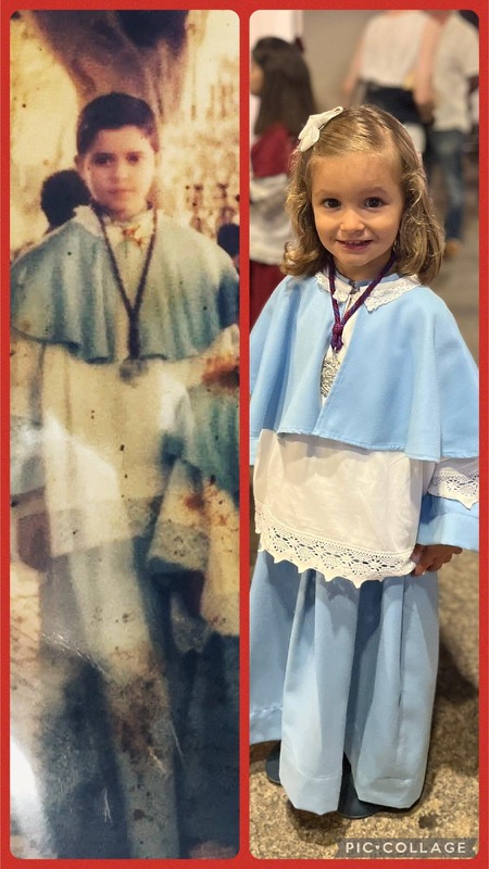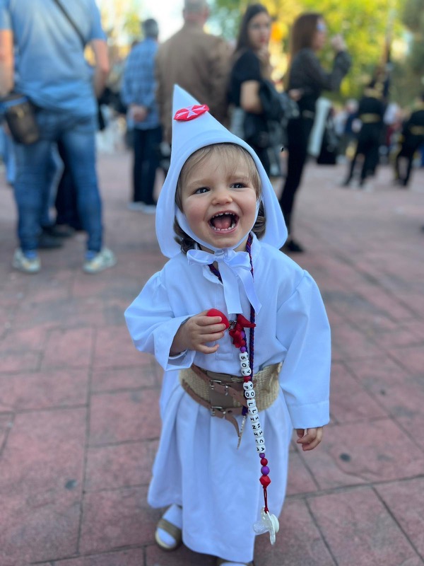 Así, con tan solo cuatro años, África ya ha salido de salido de nazarena y de monagillo, posición en la que volverá a salir este próximo Domingo de Ramos.