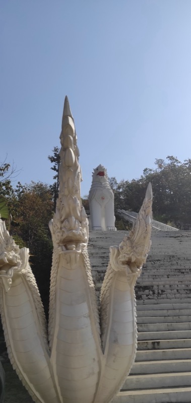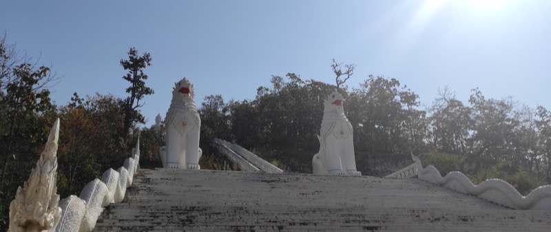 Los siguientes días los dedico a conocer los alrededores de Pai. En Wat Phra That Mae pongo a prueba mis piernas subiendo centenares de escalones para disfrutar de unas vistas espectaculares de las montañas circundantes y del gran Buda blanco que corona la colina. De ahí a Yun Lai para almorzar en lo alto de otra montaña que me regaló un paisaje de gran belleza. La paz que se respira en ese lugar solo es rota por el viento que incesantemente peina las briznas de hierba y deshoja las flores salvajes que allí crecen.