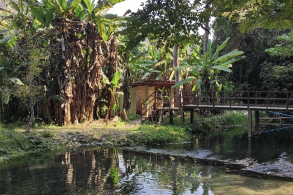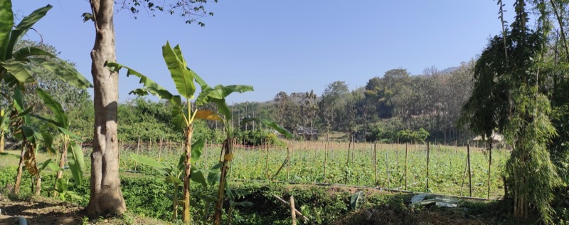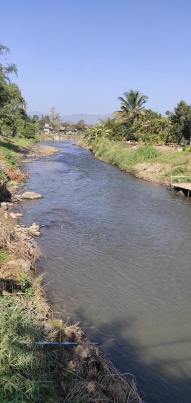 Paseo por las calles en un primer contacto y encuentro bares de tres losetas, muchos puestos de pulseras y camisetas, artículos artesanales de piel, un sitio donde alquilar ciclomotores y algunas tascas acogedoras donde desayunar y comer decentemente por poco dinero. Sigo andando hasta salir del pueblo y por el camino encuentro bastantes locales donde ofrecen masajes “sin final feliz”, anunciaban en carteles hechos a mano para evitar confusiones, continúo hasta dar con un rudimentario puente de madera que atraviesa el rio Pai que da nombre también al pintoresco pueblo. Al cruzarlo tan solo un rustico complejo donde alquilar cabañas y más adelante lo que estaba buscando: la parte salvaje que pertenece a la naturaleza, me abro paso como puedo hasta llegar a una zona tranquila sin más ruido que el avanzar del rio y el canto de algunos pájaros. De alguna forma llegó a mí, recuerdos de mi niñez en la huerta de Paneque.