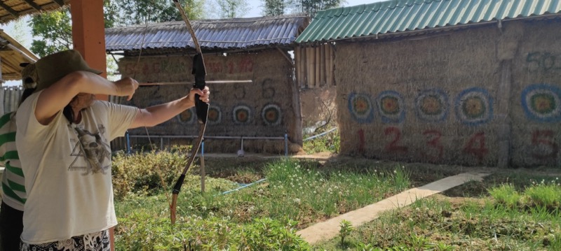Al bajar encontré un local donde vendían bebidas, cocos y productos artesanales. A pocos metros había un rustico campo de tiro donde había varios arcos de madera y algunos carcaj con flechas, aproveché para hacer algo de puntería practicando tiro al arco y me di cuenta que iba a pasar mucha hambre si mi sustento dependiese de ello. Me fui del lugar con el premio de las vistas y la amabilidad de los lugareños.