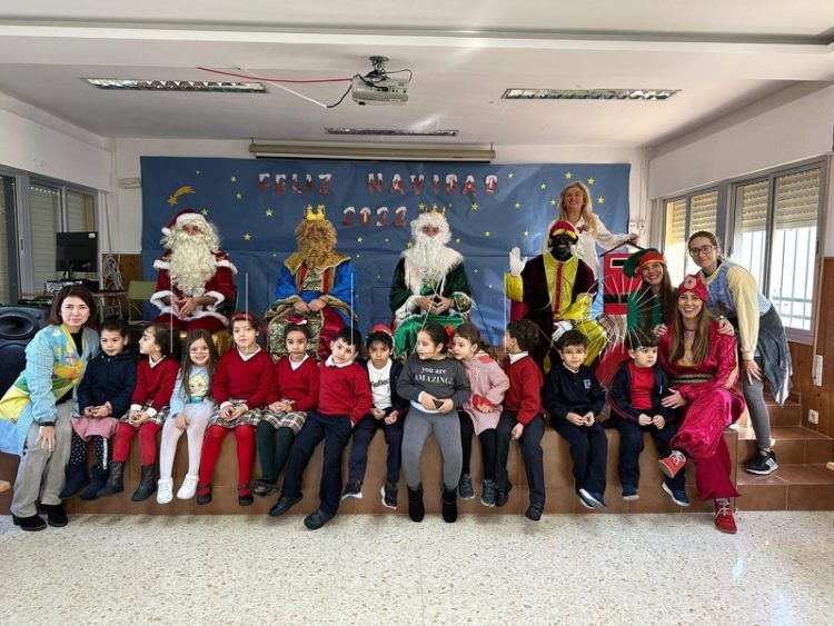 La Navidad es un momento mágico y por eso estos cuatro personajes han querido realizar esta visita de forma especial. Lo han hecho juntos, siendo de diferentes culturas pero tomando como ejemplo la multiculturalidad de Ceuta. Ese es el ejemplo que han querido transmitir este colegio con la fusión de Santa Claus y sus Majestades los Reyes Magos.