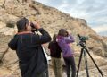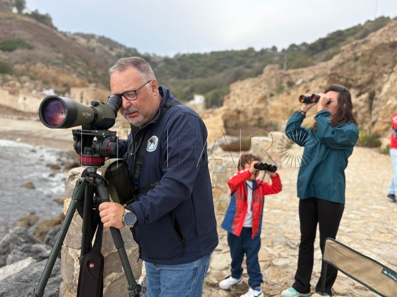 La actividad, que lleva más de una década realizándose de forma abierta al público, ha reunido en la playa del Desnarigado a un grupo de entusiastas de la ornitología y familias curiosas por conocer más de cerca el fenómeno migratorio de esta ave pelágica.