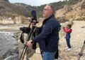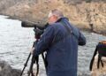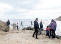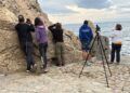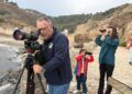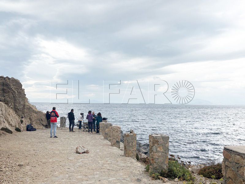Otros asistentes, unas ocho o nueve personas, han decidido quedarse en la costa, en la playa del Desnarigado, equipados con prismáticos y cámaras.