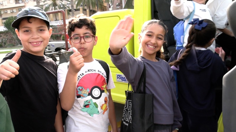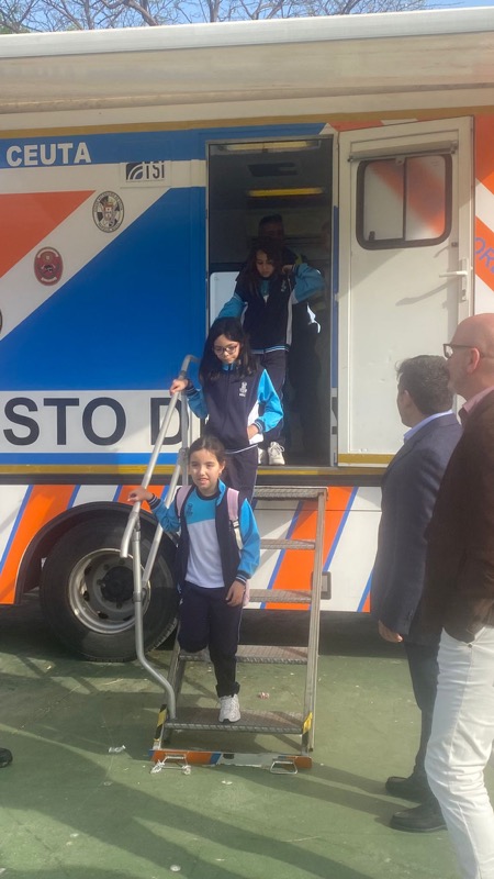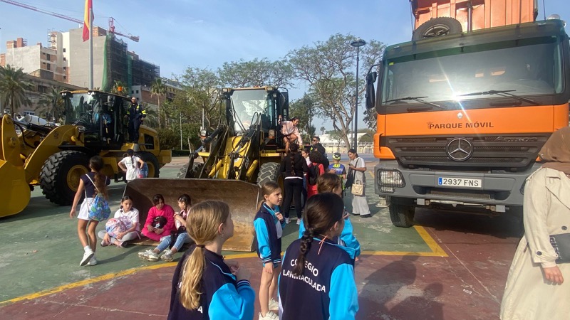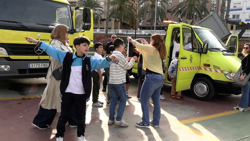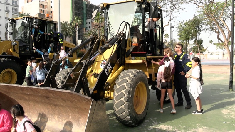 La jornada tiene también un marcado carácter lúdico. Además de recorrer los vehículos, los escolares han recibido golosinas, han participado en actividades y han disfrutado de una mañana diferente fuera del aula.