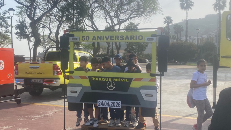 El Parque Urbano Juan Carlos I de Ceuta ha cambiado por unas horas su habitual tranquilidad por el bullicio de sirenas, risas y motores. El motivo no era para menos: el Parque Móvil de la Ciudad Autónoma esta celebrando su 50 aniversario con una jornada abierta que ha tenido como protagonistas a cerca de 500 escolares de entre 6 y 12 años, llegados desde ocho centros educativos.