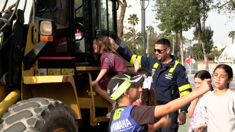 “Estamos yendo a cada coche, pitando, y nos estamos probando los cascos”, ha explicado entre risas algunas alumnas, mientras otros destacaban lo alto que era el tractor o lo llamativo de los sistemas de comunicación. La mezcla de aprendizaje y diversión ha sido constante durante toda la mañana.