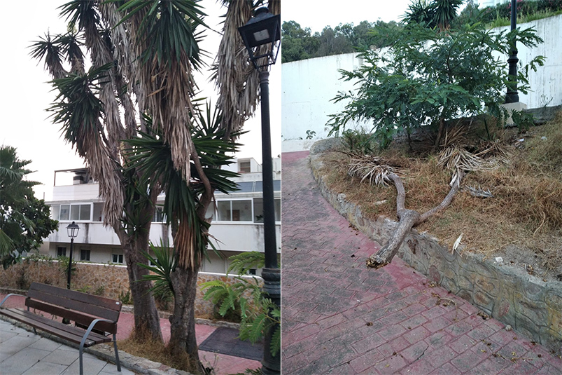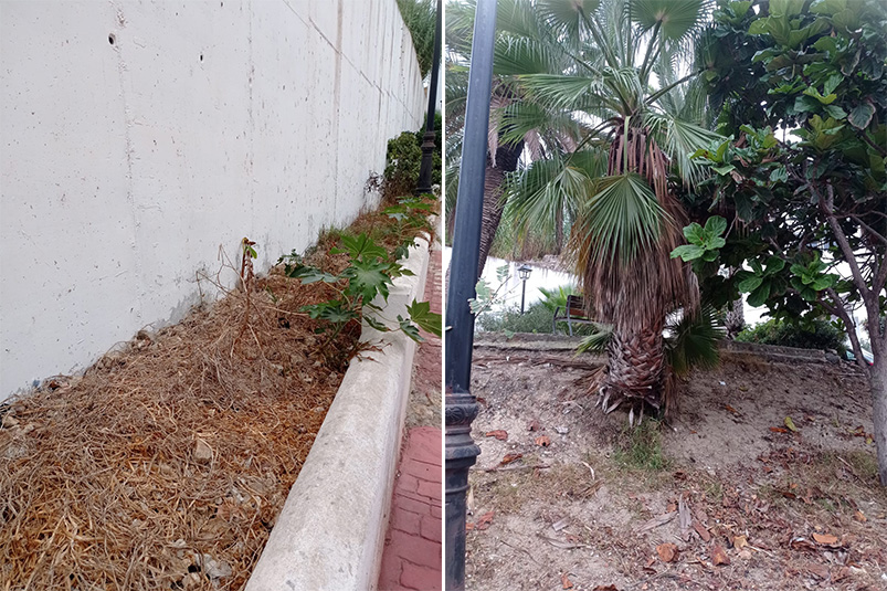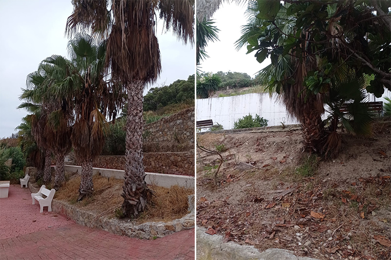 Las palmeras no se sabe el tiempo que llevan sin podarlas, están que dan pena de verlas.