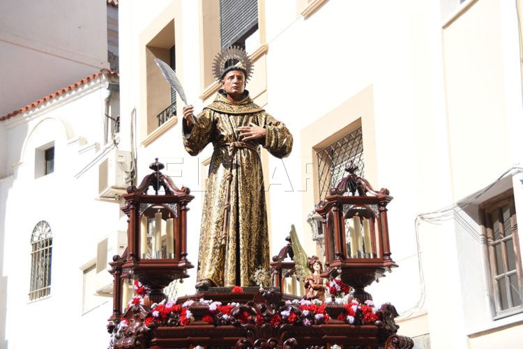 Una vez finalizada la eucaristía ha dado comienzo la procesión, sobre las 12.15 horas. El paso hacía su salida de la Catedral bajo los sones del himno nacional interpretado por la Agrupación Musical de Nuestro Padre Jesús Caído y Virgen de la Amargura y la Banda de Música Nuestro Padre Jesús Nazareno de la localidad gaditana de Alcalá de los Gazules.