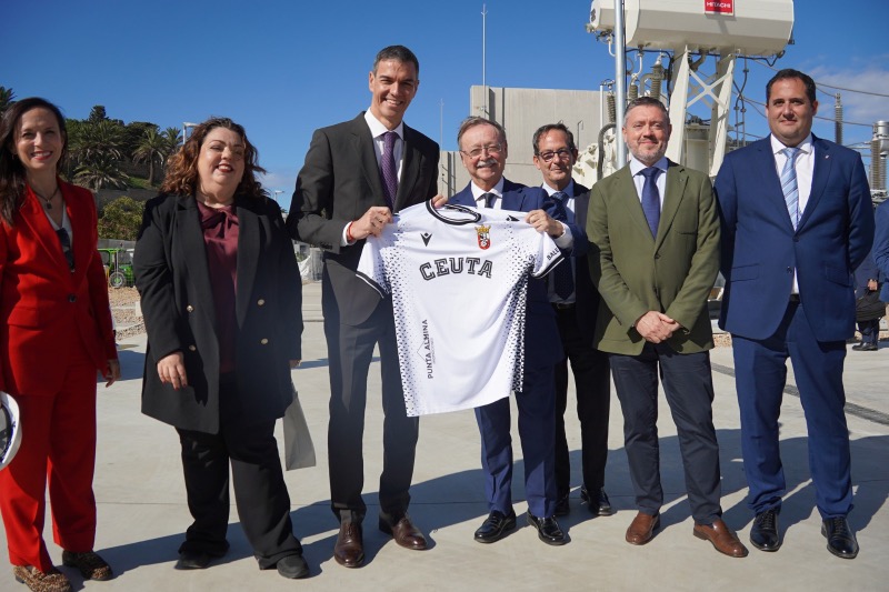 Pedro Sánchez, que ha conocido la nueva terminal marítima de Ceuta durante su cuarta visita a la ciudad y la subestación Virgen de África, ha posado con la camiseta y Juan Vivas. Ambos presidentes sosteniendo la elástica y sonrientes, acompañados, entre otros, por el presidente del Puerto, Juanma Doncel, otro fiel seguidor del club.