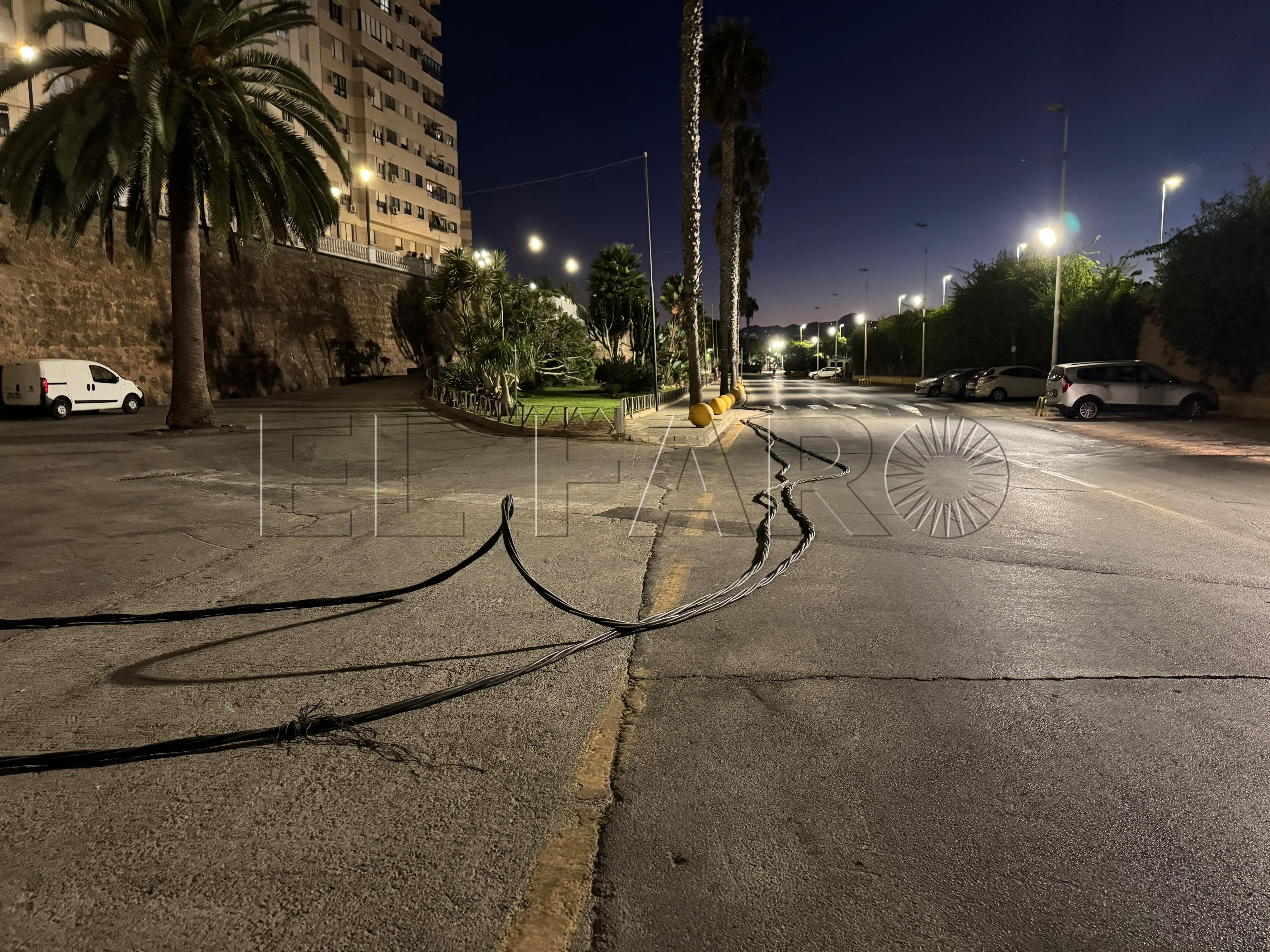 Un peligro a la vista de cualquiera. O eso debería ser. Sucede en plena Marina, en la parte baja de la carretera. Allí han quedado tendidos en el suelo y ocupando la vía unos cables retirados, al parecer, de los que se colocaron en el recinto ferial para las fiestas patronales de Ceuta.