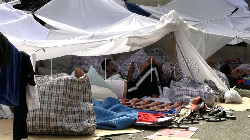 A las tiendas de campaña y colchones ubicados justo a las puertas del centro, se suman los asentamientos que hay ya por toda la carretera que conduce hacia las instalaciones oficiales.