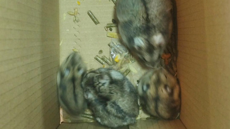 A los roedores los han encontrado este sábado metidos en una caja de leche. Quienes los abandonaron los dejaron a su suerte en plena calle, en el Polígono Virgen de África, sin importar lo que pudiera pasarles.