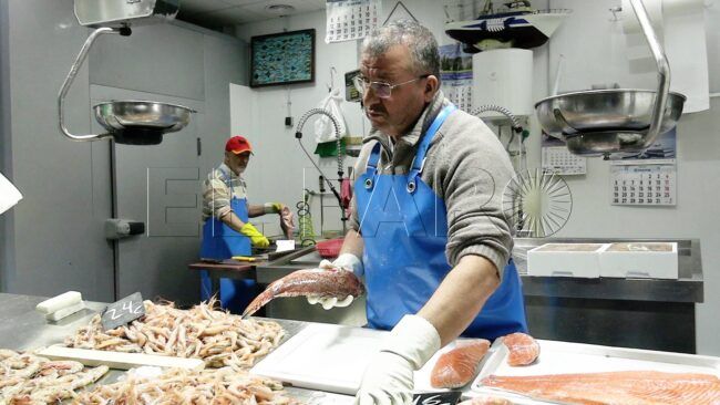 A día de hoy y desde la pandemia, “el género prácticamente está viniendo todo de la Península, porque de Marruecos directamente es imposible traerlo”, asegura el pescadero Abdelasis Ahmed, de la Marisquería Abdelasis.