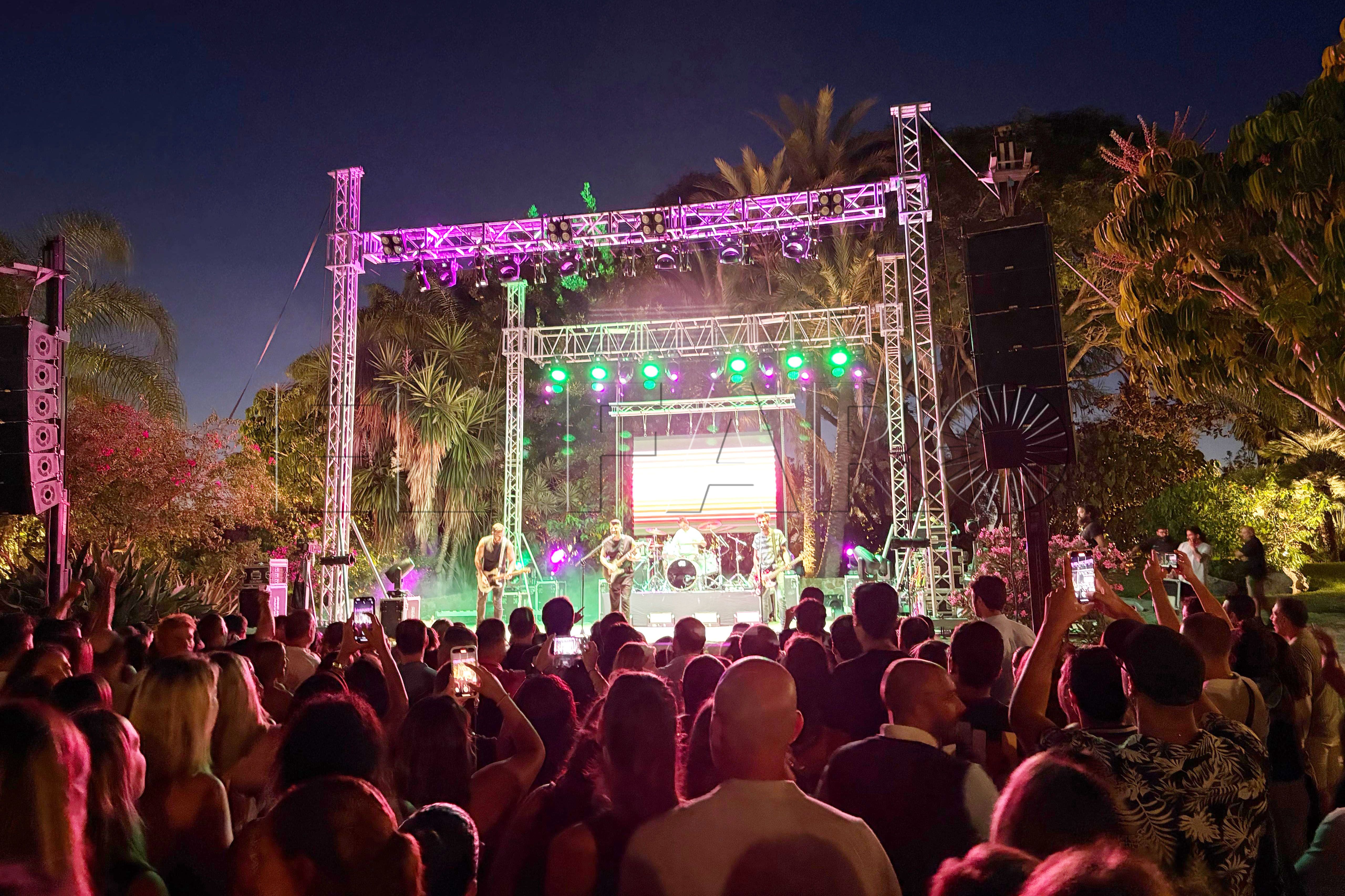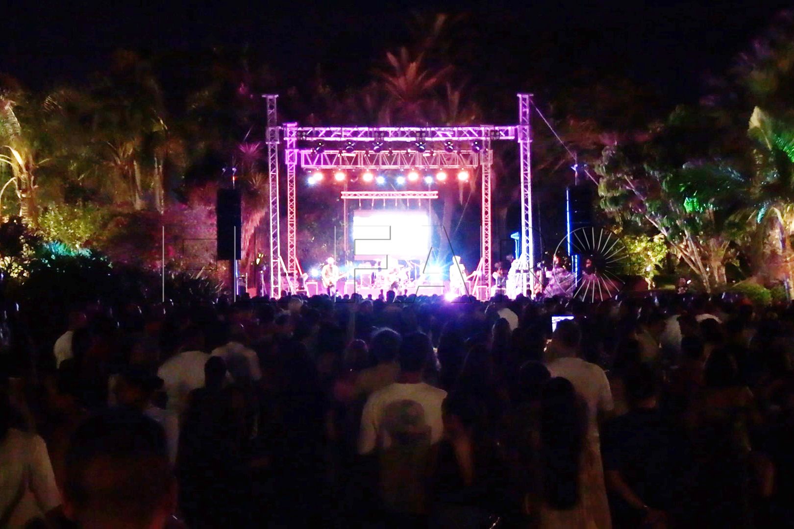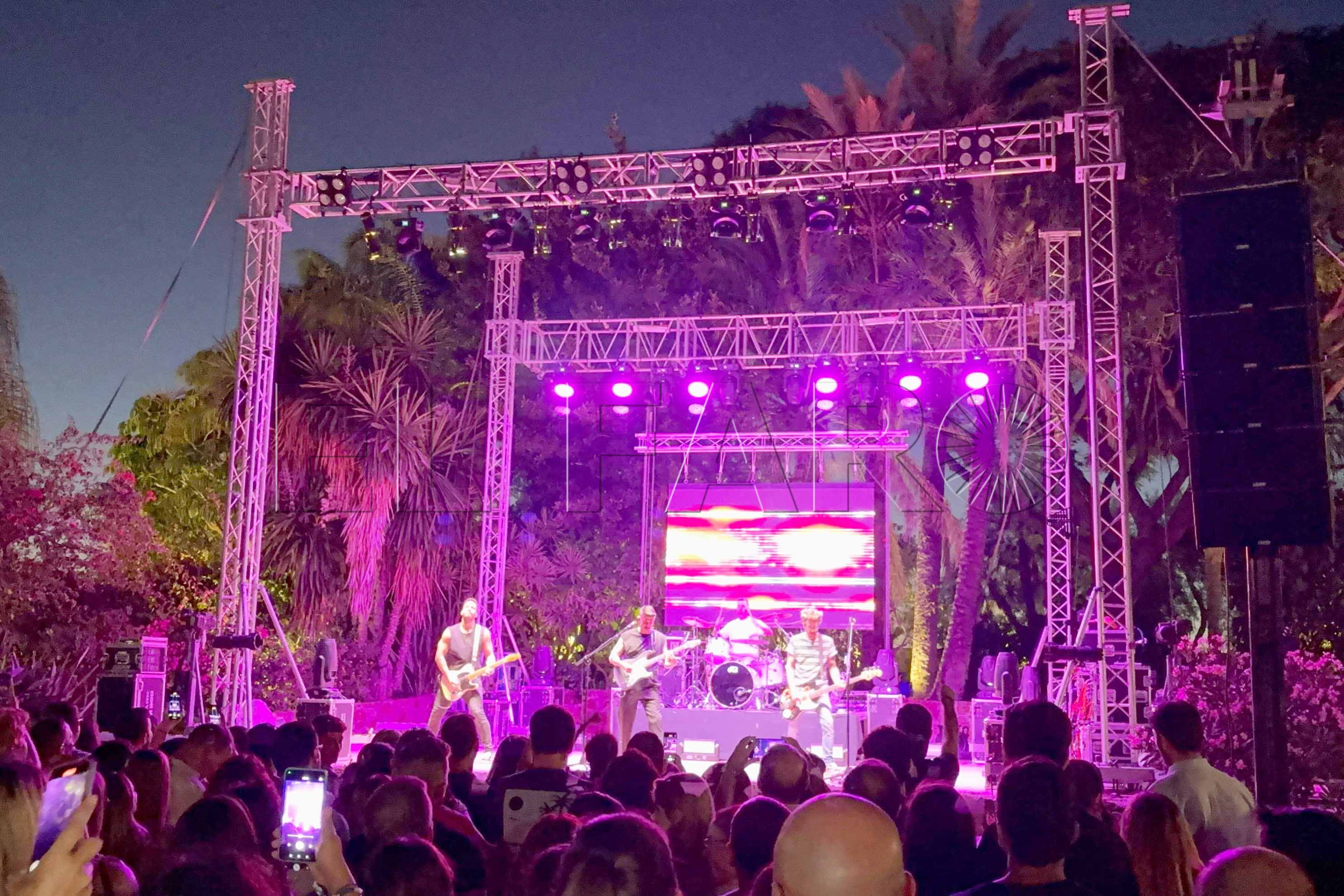 Conforme el sol se iba poniendo, los asistentes iban llegando al Parque Marítimo. Al fondo del mismo, se había dispuesto un escenario para acoger a esta banda.