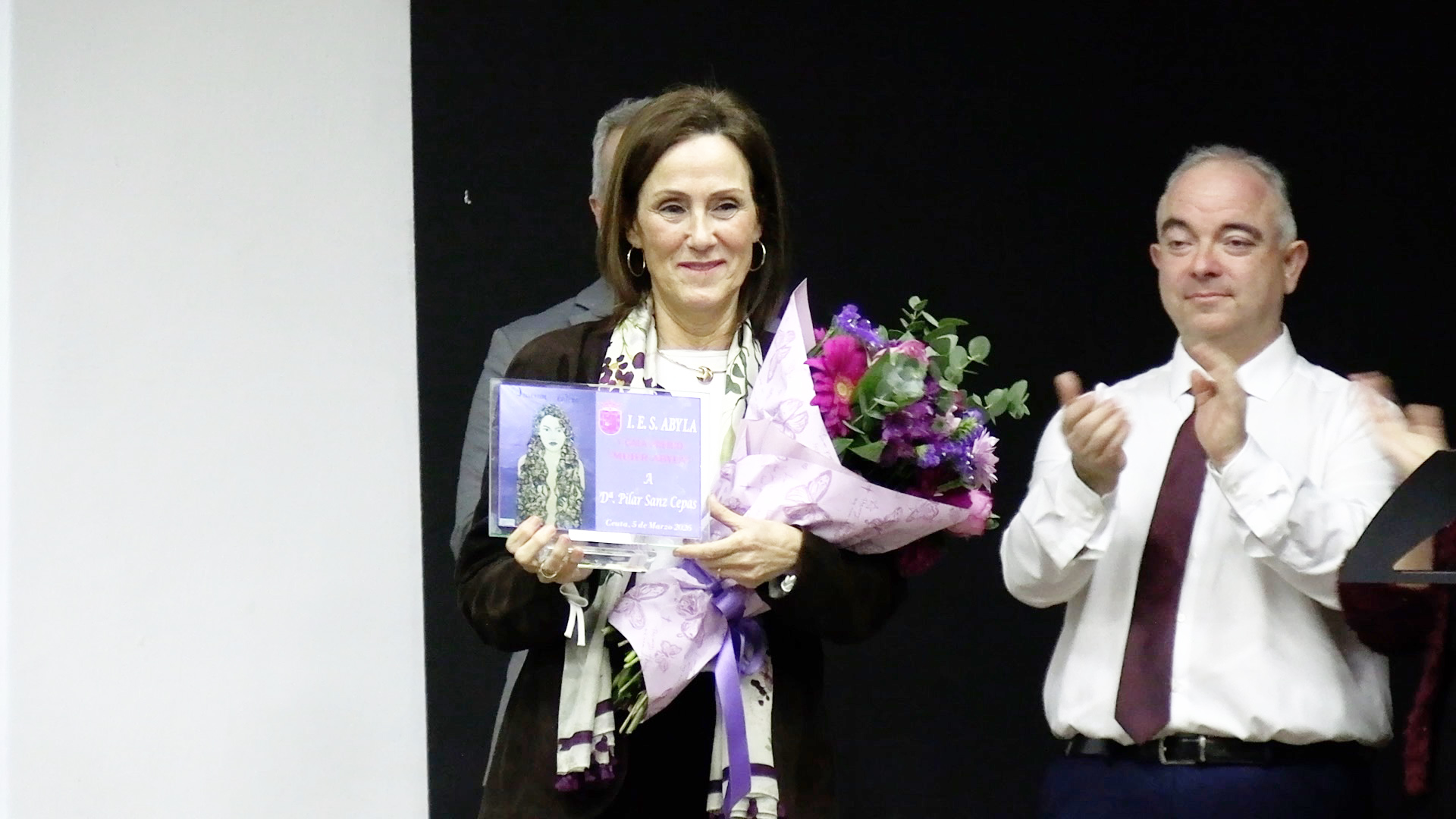 En esta edición, el galardón Mujer Abyla 2026 fue otorgado, a propuesta de la comunidad educativa, a Pilar Sanz Cepas, una profesional ampliamente reconocida por su compromiso con la coeducación, el respeto a la diversidad y su incansable labor dentro del centro.