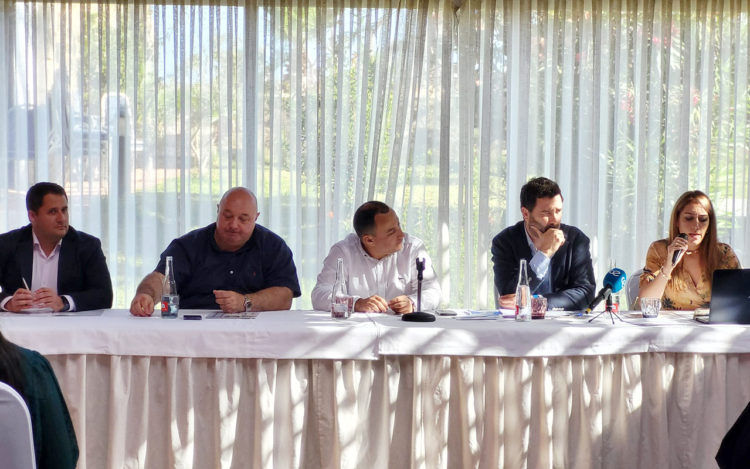 La mesa ha estado compuesta por los consejeros de Fomento, Medio Ambiente y Servicios Urbanos, Alejandro Ramírez, y el de Comercio, Turismo, Empleo y Deporte, Nicola Cecchi. De GALPCE han estado presentes el presidente, Mehdi Maaroufi, y la gerente, Irene Bruzón. También ocupaba su lugar de la mesa Joaquín Ortiz, director y fundador de Gestimar.
