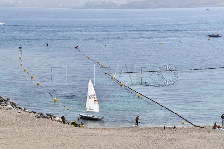 Por otra parte, en la jornada de este jueves se trabajó para la colocación de las boyas y de la señalización para separar la zona de los bañistas y la zona recreativa que se utiliza para, por ejemplo, las personas que disfrutan de una jornada de kayak o con embarcaciones provenientes del puerto deportivo. Además en los próximos días se colocarán las redes antimedusas, unas redes que evita la entrada de éstas, que son muy habituales en los últimos años en nuestras costas.