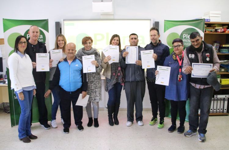 Seguidamente se ha procedido a la entrega de diplomas a los alumnos que han realizado con resultado satisfactorio tres cursos organizados por Plena inclusión Ceuta en el marco del programa ‘Formación y Gestión Integral del Conocimiento en Red 2018 (Sabiduría de todos para todos)’, subvencionado por el Ministerio de Sanidad, Servicios Sociales e Igualdad.