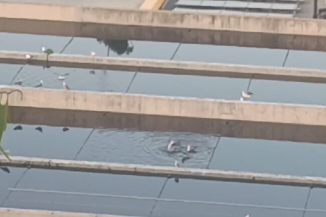 Si has paseado por la zona del Monte Hacho, habrás observado varios estanques donde el agua residual es tratada para su posterior uso en baldeo de calles y riego de zonas verdes. Pues a estas piscinas tienen acceso directo las aves, principalmente gaviotas que ven en ellas un lugar donde poder beber agua.