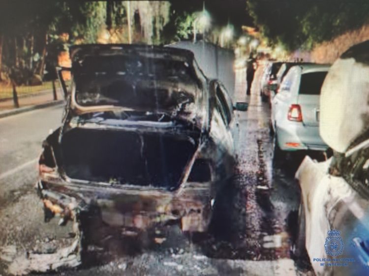 Tras personarse rápidamente la Policía Nacional (G.A.C) y tras entrevistarse con el Servicio de Extinción de Incendios y testigos de los hechos observaron los daños en el vehículo y en los anexos. Posteriormente se dirigieron a la vivienda del propietario para informarle de lo ocurrido. En ese mismo instante, el citado individuo les indicó que había aparcado su coche la noche anterior a los hechos en las inmediaciones de su vivienda, desconociendo como había llegado hasta allí.